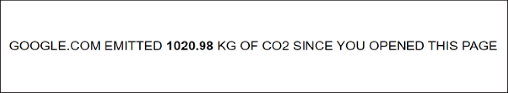 Figure 1. Screenshot on Joana Moll’s 2014 online art installation, CO2GLE, that displays the amount of real-time carbon dioxide emissions from global visits to google.com (screenshot taken on 13 December 2021). © Joana Moll. Reuse not permitted.